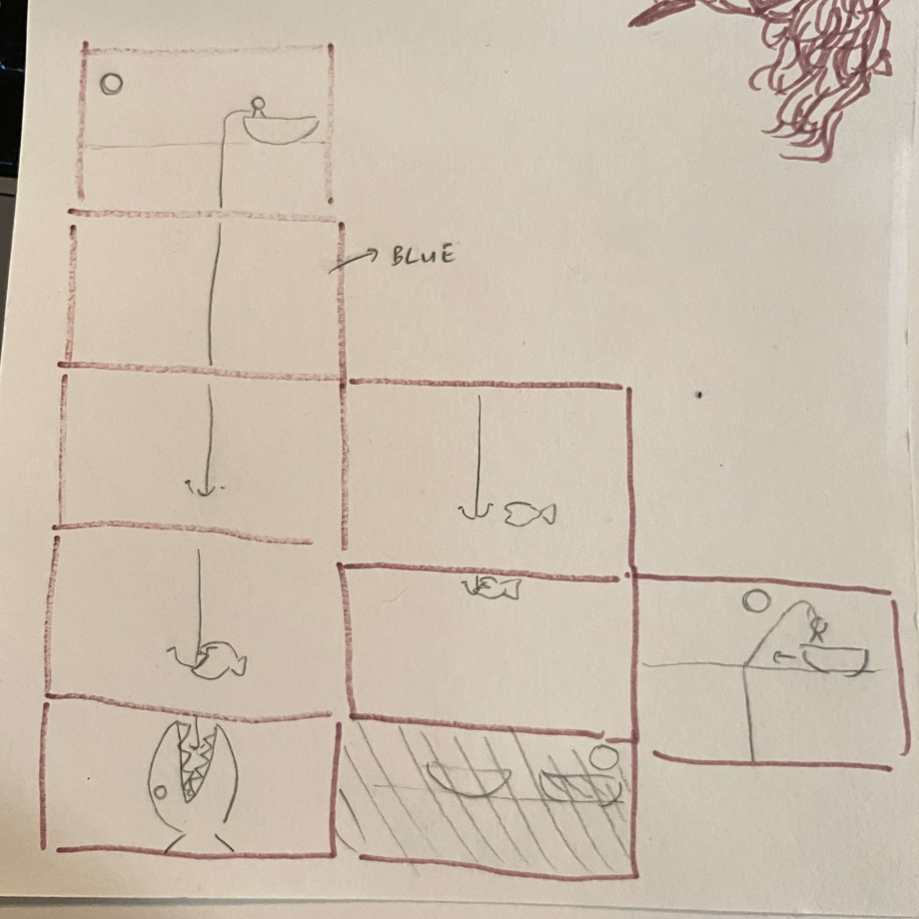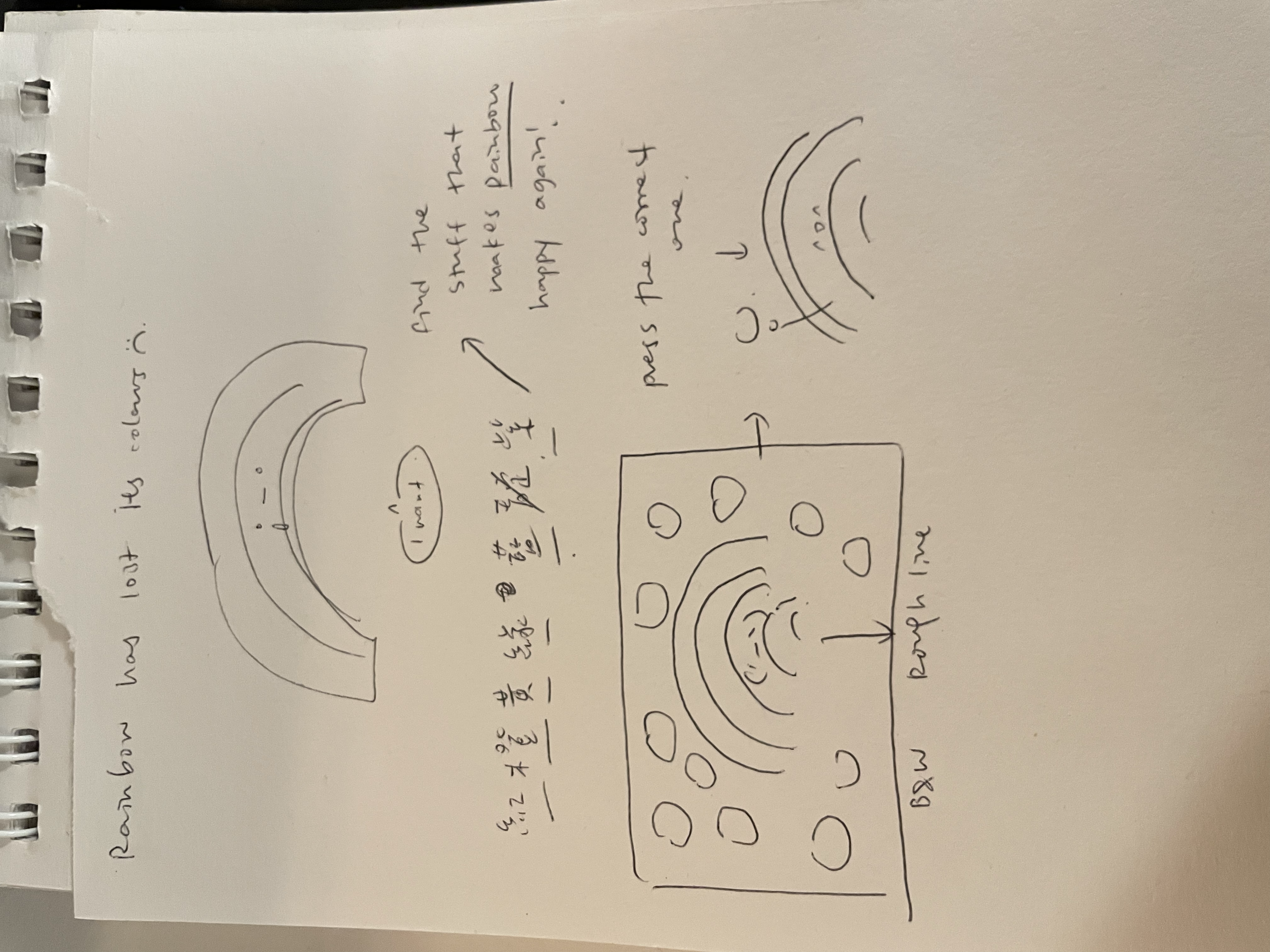 I tried brainstorming new stories, but I realized I shouldn’t waste so much time thinking of a new one. Instead, I flipped through the drafts and chose the Rainbow story to work on. Although I haven’t started the coding part, I feel more accomplished after finishing the storyboards.