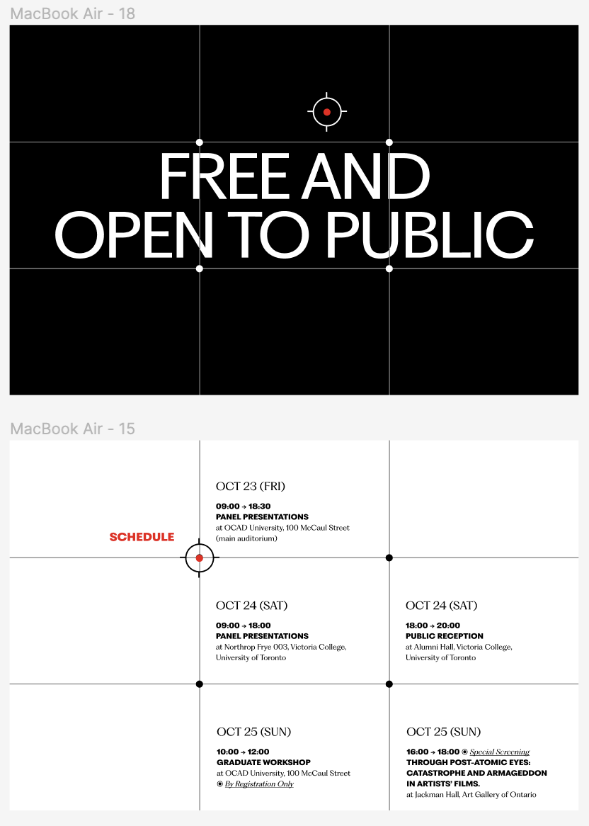 - Friday 23 October, 9 am to 6:30 pm: Panel presentations at OCAD University, 100 McCaul Street (main auditorium)